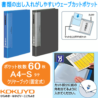 クリヤーブック ウェーブカットポケット 固定式 A4-S 60枚