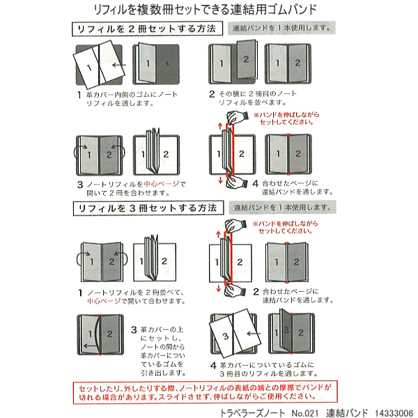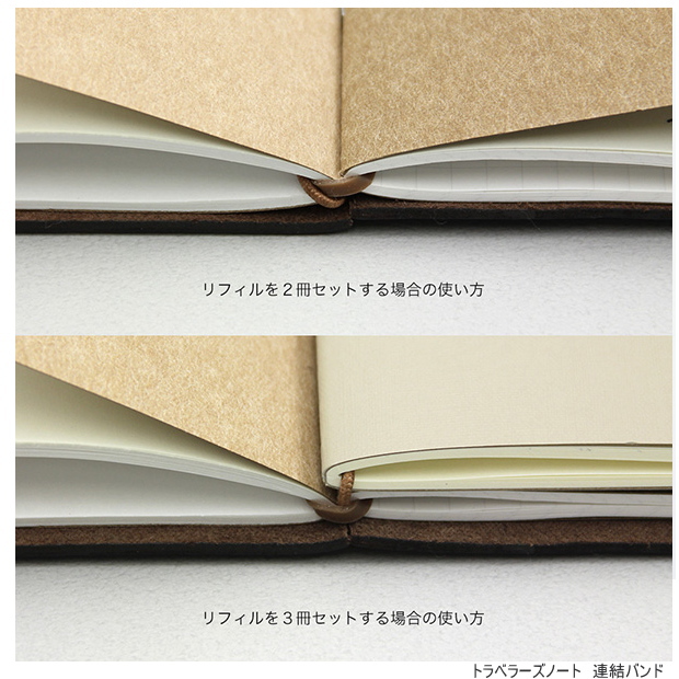 トラベラーズノートに複数冊のリフィルをセットするために必要なアイテム。リフィルを2冊以上使用する方は併せて利用ください |
