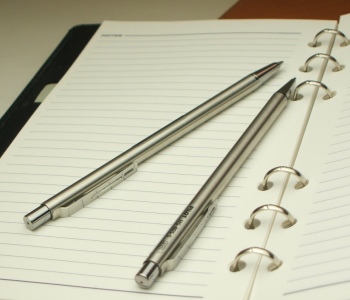 シルバーのシンプルなデザインの筆記具。手帳のおともにピッタリです! |