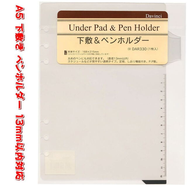 システム手帳 リフィル A5 下敷&ペンホルダー 定規 しおり デスクサイズ 6穴 レフィル ダヴィンチ DAR330 【ネコポス便対応】