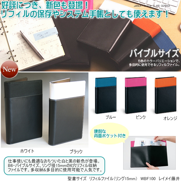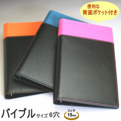 リング内径15mm、 リフィルサイズ:横95×縦170mm(バイブルサイズ 6穴) *リフィルは別売りです