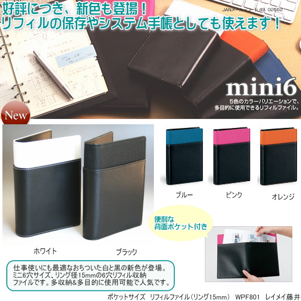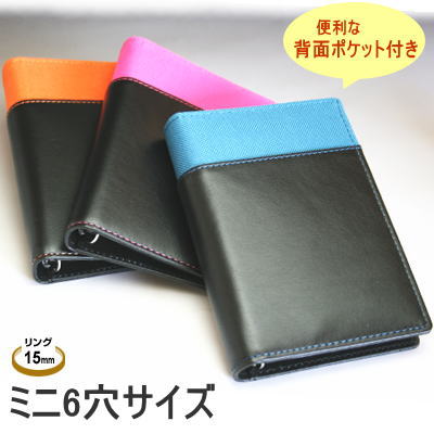 リング内径15mm、 リフィルサイズ:横76×縦126mm(ミニ6穴サイズ) *リフィルは別売りです