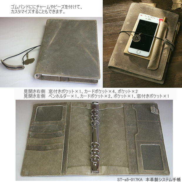 システム手帳A5 牛革 ゴムバンド付き