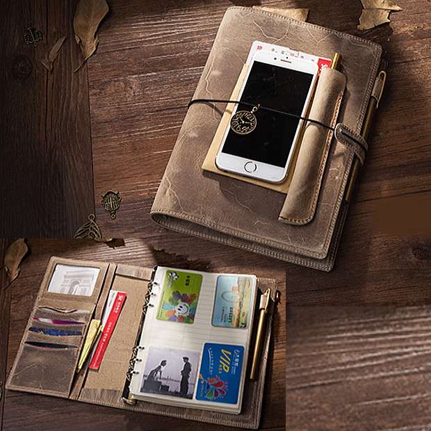 | 天然素材の本革製 システム手帳。トラベラーズノートと同様にゴムベルト式のシンプルなデザインで使う人がカスタマイズしやすいシステム手帳です。 |